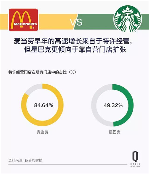 麥當(dāng)勞靠的是特許經(jīng)營(yíng),而星巴克的幾萬家門店大多都是自營(yíng)