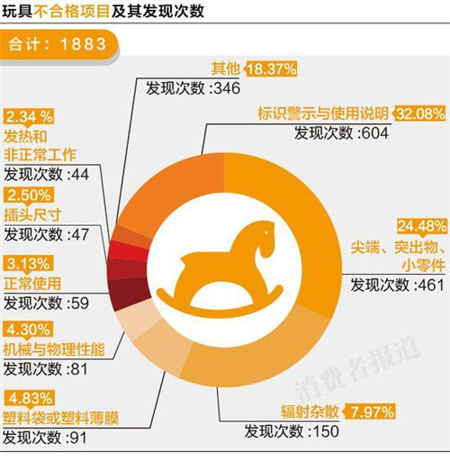 兒童產(chǎn)品的整體不合格發(fā)現(xiàn)率高達(dá)16.6%,美高樂、多喜愛、松堡王國、回力、步步高、青蛙王子、天堂傘等知名品牌均數(shù)次登上黑榜,兒童產(chǎn)品在標(biāo)識、危險(xiǎn)尖端與零件上存在更多的問題。