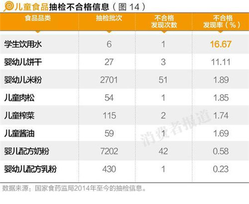 《消費(fèi)者報(bào)道》通過梳理國家食藥監(jiān)局2014年以來的12551條兒童食品抽檢數(shù)據(jù)發(fā)現(xiàn),兒童食品的合格率較高,達(dá)99%,而不合格品牌也是較為小眾品牌。本刊提醒消費(fèi)者謹(jǐn)慎購買奶粉不合格次數(shù)較多的幾個(gè)品牌,如雅因樂、冠爾優(yōu)等。