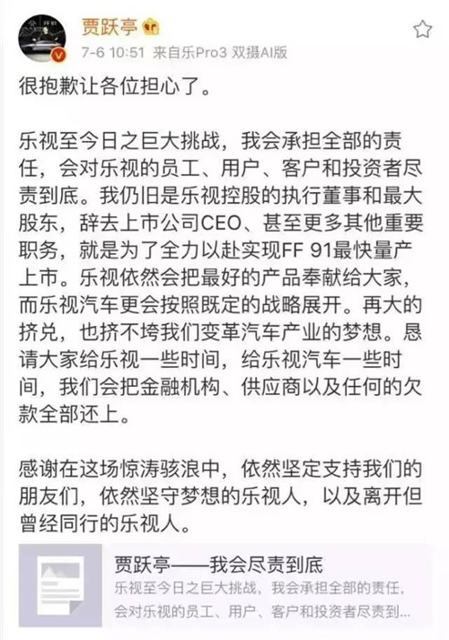 2、辭任之前賈躍亭剛發(fā)了道歉信,說會負(fù)責(zé)到底