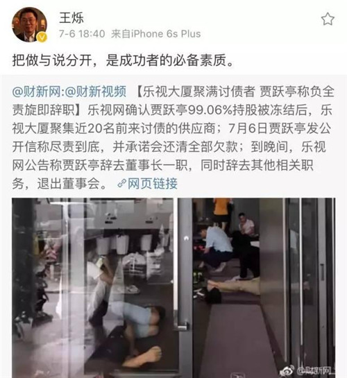 程時盛在朋友圈中寫到:相信大家因?qū)O正義先生和樂視的緋聞熱鬧了兩個小時。我們第一時間聯(lián)系了“美人獅”賬號并請其迅速刪除。該作者表示,“看到一個創(chuàng)業(yè)公司陷入困境,心有戚戚焉,沖動,想表示下支持”,于是進行了“文學(xué)創(chuàng)作”。我們對作者的“善意”及配合刪除心懷感激。對于樂視遇到的挑戰(zhàn),賈總承諾會盡責(zé)到底,把欠款全還上,同時會把最好的產(chǎn)品奉獻給大家。感謝在這場驚濤駭浪中,依然堅定支持我們的朋友們!