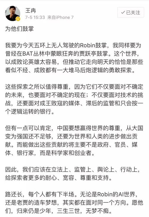經(jīng)緯創(chuàng)投創(chuàng)始合伙人張穎也在個人微博發(fā)表簡短的看法: