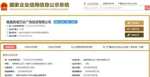 據(jù)萬達集團信息,今年6月23日,南昌西湖萬達廣場開業(yè)。隨后,7月5日,該廣場的經(jīng)營范圍、投資人、法定代表人就出現(xiàn)變動。