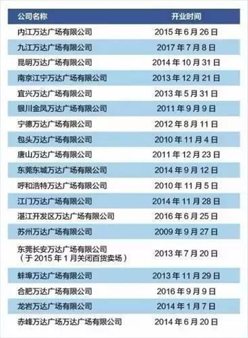 這幾家萬達廣場的股權(quán)變更時間分別為:2017年1月18日、2017年4月11日和2017年4月20日。