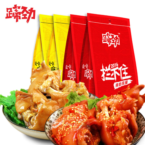 蹄勁豬蹄,我們鹵的不只是豬蹄,更是能量與樂趣;從一出生,就自備能量標(biāo)簽和互聯(lián)網(wǎng)精神。全民參與試吃,漂洋過海創(chuàng)新,百位美女挑蹄,眾多大咖獻(xiàn)計(jì),這只辣的風(fēng)騷、香的誘惑的豬蹄在2015成為最具活力和創(chuàng)意的農(nóng)業(yè)深加工品牌:營銷視頻點(diǎn)擊量突破600萬,微信公眾平臺一夜?jié)q粉6萬,獲得2015年“標(biāo)桿”中國營銷大獎——創(chuàng)新案例獎,得到羅輯思維、億邦動力、南方人物周刊等權(quán)威媒體平臺的鼎力推薦,為中國農(nóng)業(yè)探索互聯(lián)網(wǎng)營銷模式提供了良好范本!