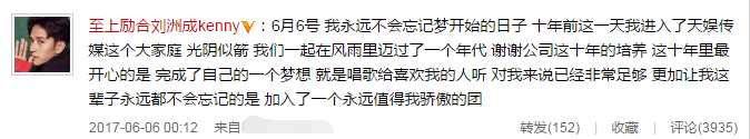 劉洲成離開(kāi)天娛:至上勵(lì)合像家人 我們深愛(ài)彼此