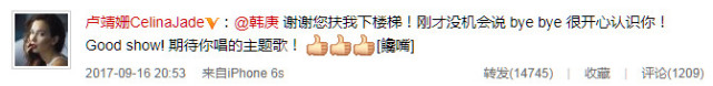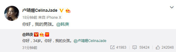 盧靖姍與韓庚微博互動