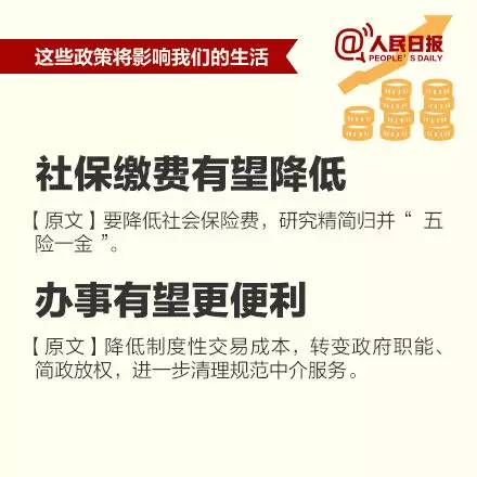 這次會(huì)議還用十個(gè)“更加注重”指明了新常態(tài)下應(yīng)該“怎么干”。更為關(guān)鍵的是,這個(gè)看似“高大上”的經(jīng)濟(jì)工作會(huì)議,其實(shí)離你我并不遙遠(yuǎn):社會(huì)保險(xiǎn)費(fèi)有望降低、非戶籍人口也能住公租房、鼓勵(lì)房企適當(dāng)降房價(jià)……中央敲定下的這些事,新的一年毫無疑問將給你我生活帶來深刻影響。