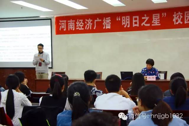 原來是河南經(jīng)濟(jì)廣播“明日之星”校園主持人大賽賽前培訓(xùn)現(xiàn)場(chǎng)呀!還沒到開講,房間里就已經(jīng)座無虛席。