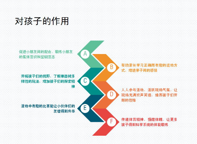 “趣味親子運動趴”根據(jù)孩子年齡不同設(shè)置指標,由家長和孩子共同參與、相互協(xié)作完成,是一次從耐力到動手能力、反應(yīng)力到創(chuàng)造力,速度與平衡全面考量的一系列親子活動,從“歡樂親子跑”到“趣味體能大沖關(guān)”,不但提高幼兒的活動技能,開拓孩子們的視野,增加孩子們的探索精神,增強少年兒童的身體素質(zhì)的,又寓教于樂,有利于孩子們身心健康成長,同時讓家長們也了解正確而有趣的運動方式,更好的增進父母與孩子間感情。
