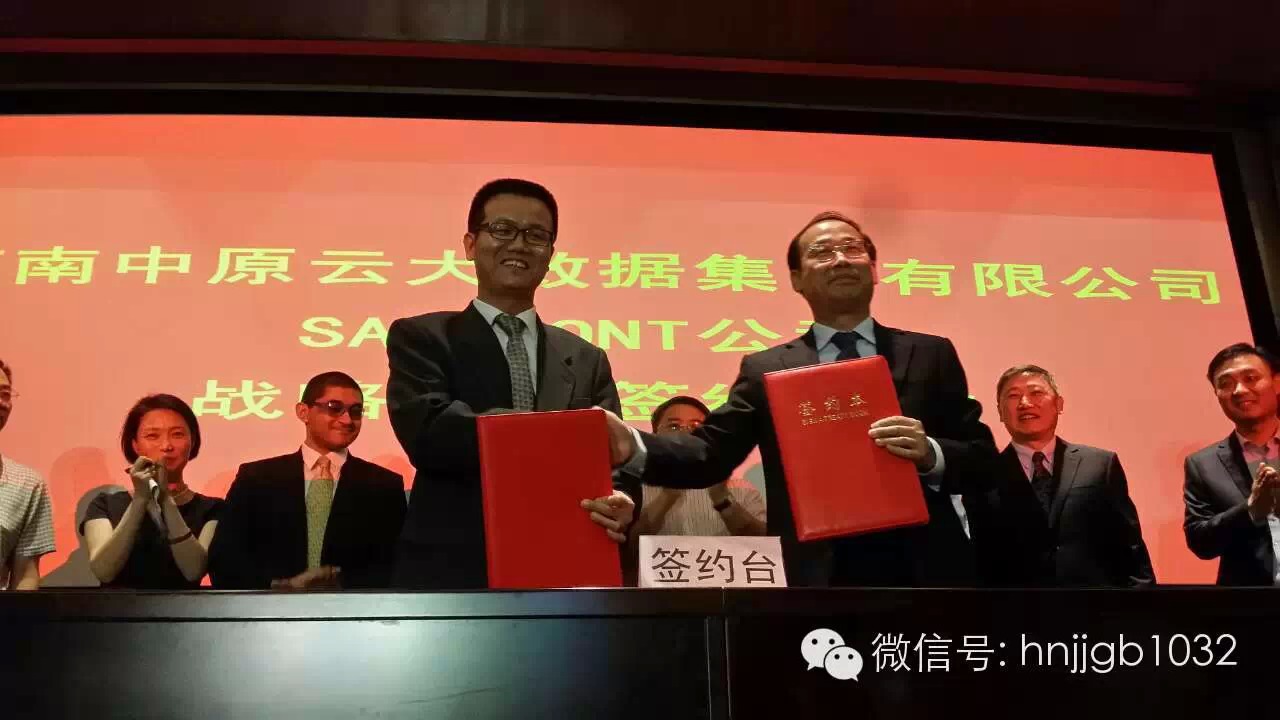 剛剛交付的中原云平臺今天上午在鄭州中原福塔簽下了跨境合作的第一單——河南中原云大數(shù)據(jù)集團有限公司&美國 Sanipont international LLC公司戰(zhàn)略合作協(xié)議。