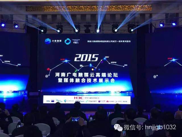 由省新聞出版廣電局科學技術委員會、河南大象融媒體集團有限公司、河南中原云大數據集團有限公司共同主辦的“河南大象融媒體集團成立一周年慶典活動之2015河南廣電融媒云高端論壇暨媒體融合技術展示會”今天在鄭州黃河迎賓館舉行。
