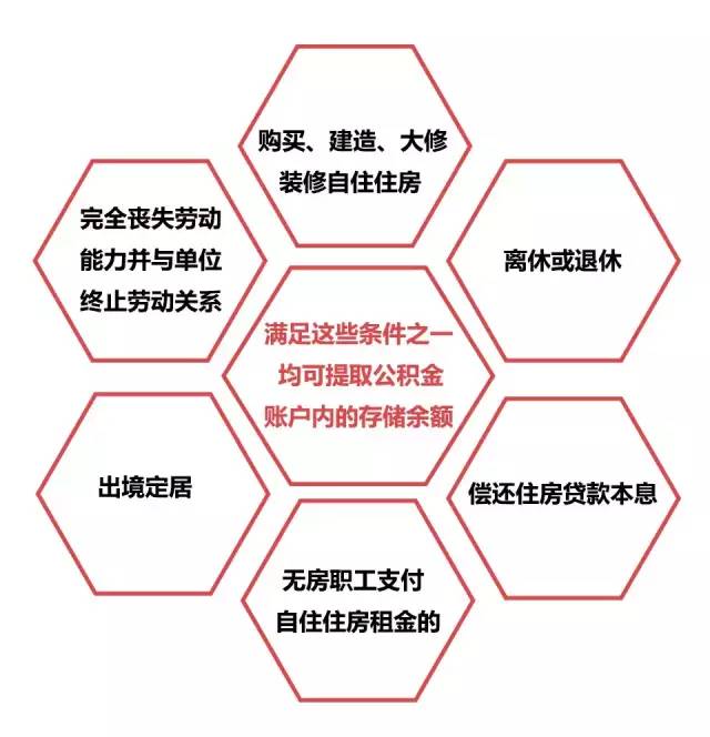 職工有以上六種情形之一的,可以提取職工住房公積金賬戶內(nèi)的存儲余額。其中,因離休、退休;完全喪失勞動能力,并與單位終止勞動關(guān)系;出境定居,提取職工住房公積金的,應當同時注銷職工住房公積金賬戶。