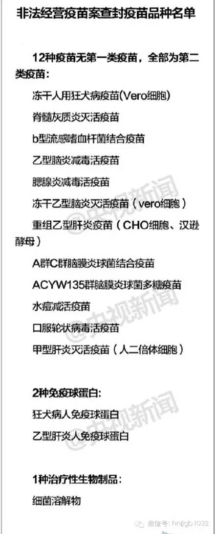 據(jù)@央視新聞 消息:3月20日,山東食品藥品監(jiān)管部門經(jīng)對警方提供的,關于龐某非法經(jīng)營疫苗案查封疫苗品種的清單進行核實,發(fā)現(xiàn)實有疫苗12種、免疫球蛋白2種、治療性生物制品1種。具體名單如下: