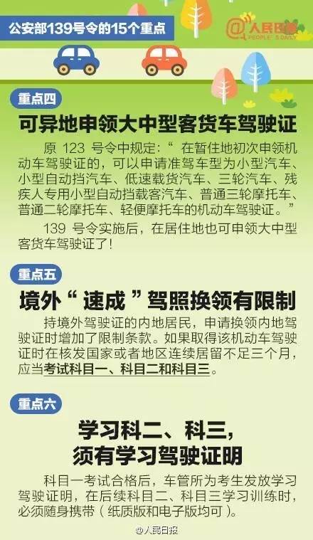 4月1日后,持境外駕駛證的內地居民,申請換領內地駕駛證時增加了限制條款。如果取得該機動車駕駛證時,在核發(fā)國家或地區(qū)連續(xù)居留不足三個月,應當考科目一、科目二和科目三。
