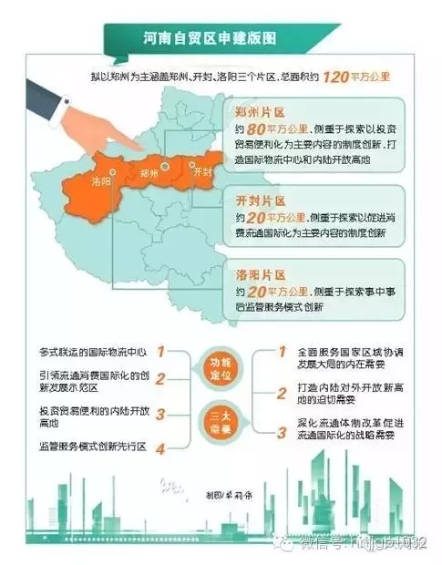 據(jù)了解,河南自貿(mào)區(qū)實施范圍上,擬以鄭州為主涵蓋鄭州、開封、洛陽三個片區(qū),總面積約120平方公里。