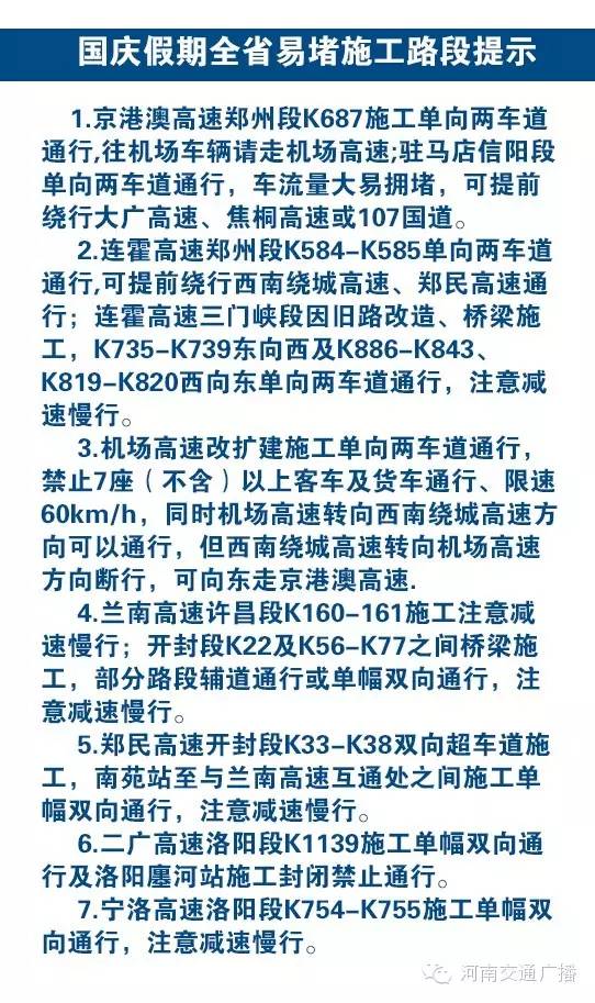 更多實(shí)時(shí)路況請(qǐng)關(guān)注“河南交通廣播”官方微博微信和“交廣領(lǐng)航”APP實(shí)時(shí)播報(bào)。
