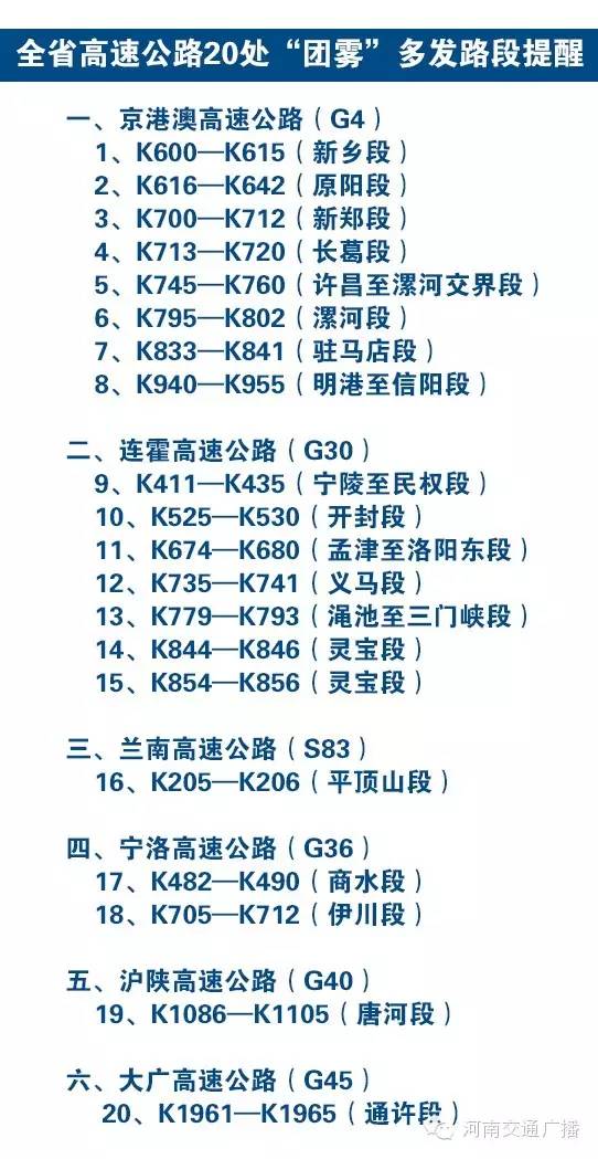 除了容易擁堵的那些路段,更要小心這些“團(tuán)霧”路段!