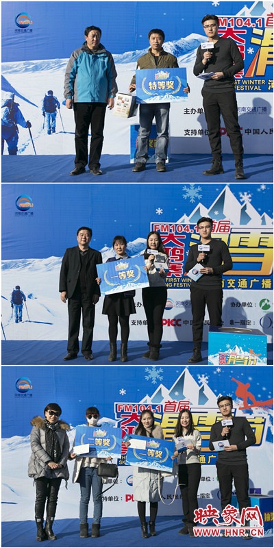 各位親,12月26號(hào)有沒(méi)有去滑雪???當(dāng)天上午,F(xiàn)M1041河南交通廣播聯(lián)合禹州市委宣傳部、禹州市旅游局、禹州市大鴻寨臥佛山旅游開(kāi)發(fā)有限公司、禹州市登山協(xié)會(huì)、中國(guó)人保財(cái)險(xiǎn)鄭州市分公司、河南雲(yún)釧商貿(mào)有限公司共同舉辦了河南交通廣播首屆大鴻寨車(chē)友滑雪節(jié)。300輛車(chē),1200多名車(chē)友齊聚禹州大鴻寨high玩滑雪,體驗(yàn)冬季里的“速度與激情”,也分享了萬(wàn)元大獎(jiǎng)。