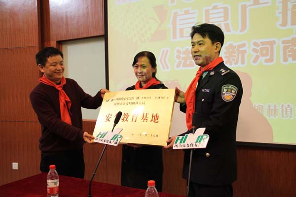 2012年3月26日是第十七個“全國中小學安全教育日”,在教育日當天舉行“中小學安全教育基地”掛牌儀式,河南電臺信息廣播依托日常欄目《法制新河南》的整合資源,將中小學安全宣傳教育常態(tài)化。據(jù)河南電臺信息廣播總監(jiān)李金鋒介紹,“教育基地建立以后,河南電臺信息廣播將聯(lián)合鄭州市公安局柳林分局,通過信息廣播AM603、FM105.6廣播頻率,以《法制新河南》欄目為陣地,長期持久的宣傳中小學安全教育知識,并為柳林鎮(zhèn)第四小學的學生提供書籍、器械等安全教育的物品,節(jié)目主持人和柳林分局的警官還將不定期的深入校園內(nèi),跟學生們面對面的交流、一對一的輔導?!?br />