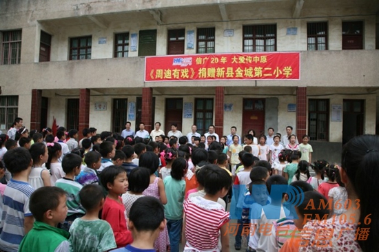 信廣20年,大愛傳中原。5月30日,河南電臺(tái)信息廣播《周迪有戲》欄目組攜愛心基金走進(jìn)信陽(yáng)新縣金城小學(xué)和廟墩村小學(xué),為孩子們捐助了4間教室和生活學(xué)習(xí)用品。