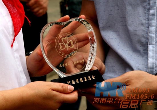 河南省慈善總會(huì)捐贈(zèng)部主任李元春代表河南省慈善總會(huì)為《周迪有戲》欄目組頒發(fā)了“最美欄目”公益先行愛心獎(jiǎng)杯。