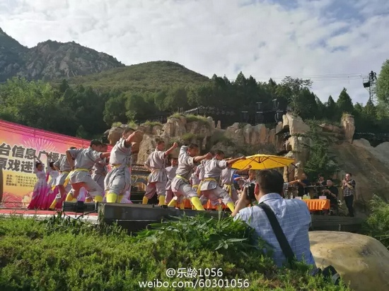 這里進(jìn)行的是河南電臺(tái)第六屆“中原戲迷擂臺(tái)賽”首場(chǎng)晉級(jí)賽。作為全球最大的山地實(shí)景演出,“禪宗少林·音樂(lè)大典”一直以來(lái)以少林文化享譽(yù)海內(nèi)外,此次舉辦戲曲比賽,可以說(shuō)是開(kāi)創(chuàng)了國(guó)內(nèi)實(shí)景演出攜手戲曲大賽的先河。