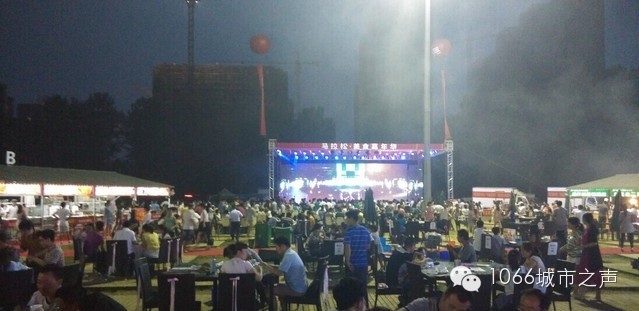 中原美食嘉年華的開幕標(biāo)志著集美食、運(yùn)動(dòng)、娛樂等元素的品牌夜市正式投入運(yùn)營(yíng)??墒沁@里不僅僅是吃飯的地兒,你看那邊幾桌的白領(lǐng),白色襯衫都沒來得及脫下就已經(jīng)搶先坐下(請(qǐng)注意,他們是扭著頭看完舞臺(tái)表演的,沒起身,沒起身啊),“下班后,跟同事來這兒說說話,放松下挺好的?!逼渲幸晃粠浶』镬t腆的說到。