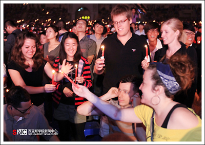 外教與留學(xué)生共同參與燭光晚會(huì)