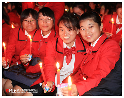 金秋九月,在同學(xué)們的陣陣掌聲與歡呼聲中,2012教育廣播——西亞斯迎新燭光晚會(huì)拉開帷幕。晚會(huì)一開始,首先由大四學(xué)生代表將象征著西亞斯精神的火炬依次傳遞給低年級同學(xué),最終傳遞至大一新生手中,并以此點(diǎn)燃全校師生手中的蠟燭來照亮整個(gè)天空。面對這樣的迎新晚會(huì),大一新生們顯得非常激動(dòng)。
