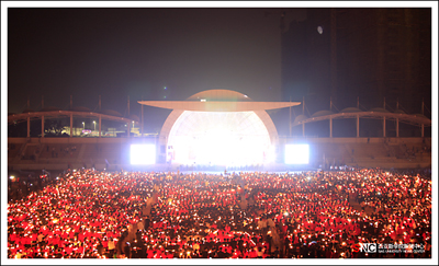 天空中煙花燦爛,天空下燭光熒熒,晚會(huì)逐漸落下帷幕