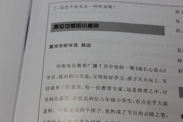 這期談教育的節(jié)目之所以吸引人,兩位小學(xué)生增色不少。聽了這期節(jié)目,大家還能感覺出來,女主持人雖然年輕,卻非常用心,非常給力,非常真誠,對辦好節(jié)目,實在是功不可沒。