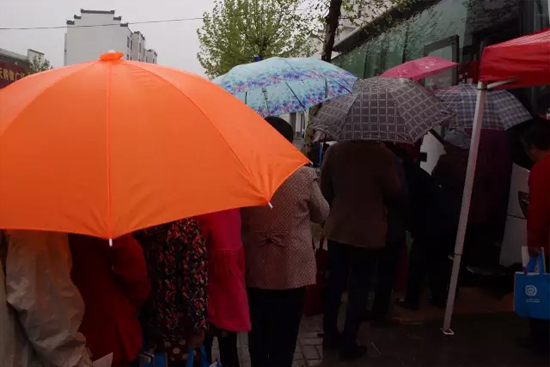 天公雖然不作美,下起了大雨。但是,值得稱(chēng)贊的是所有醫(yī)務(wù)人員及工作人員并沒(méi)有因?yàn)榇笥甓鴷和9ぷ?,大家繼續(xù)不辭艱辛,冒雨為村民服務(wù)。