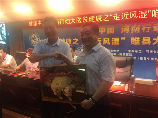 07月23日上午,由河南省衛(wèi)計(jì)委宣傳處指導(dǎo),河南省醫(yī)學(xué)科普學(xué)會(huì)、醫(yī)藥衛(wèi)生報(bào)主辦的“健康中國(guó) 河南行動(dòng) 大醫(yī)說健康”開啟第二站:“走進(jìn)風(fēng)濕”睢縣大型醫(yī)學(xué)科普宣講義診活動(dòng)。