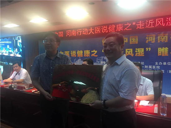 活動(dòng)現(xiàn)場(chǎng)還進(jìn)行了“河南省醫(yī)學(xué)科學(xué)普及學(xué)會(huì)風(fēng)濕醫(yī)學(xué)科普基地”和“河南中醫(yī)藥大學(xué)第一附屬醫(yī)院風(fēng)濕醫(yī)學(xué)聯(lián)盟單位”的揭牌儀式。