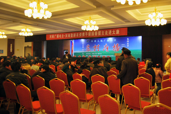 為凈化農(nóng)資市場、保護(hù)農(nóng)民利益、服務(wù)農(nóng)業(yè)生產(chǎn),河南電臺農(nóng)村廣播成功舉辦——“3.15放心農(nóng)資下鄉(xiāng)進(jìn)村活動”。3月14日清晨冒雨趕赴河南省周口市太康縣,邀請省會相關(guān)職能部門領(lǐng)導(dǎo)現(xiàn)場宣傳科學(xué)種田知識,現(xiàn)場抽獎為當(dāng)?shù)剞r(nóng)民發(fā)放放心農(nóng)資。并邀請河南勤耕農(nóng)資等企業(yè)、文化界相關(guān)人士帶去精彩的互動與節(jié)目演出。戲曲、魔術(shù)、雜技、變臉、抽獎等穿插互動!精彩紛呈!高潮迭起!當(dāng)天從周口各地聞訊冒雨趕來的農(nóng)民把活動現(xiàn)場擠得水泄不通,鄉(xiāng)親們臉上洋溢著滿意的笑容,雖然天氣驟冷,但現(xiàn)場互動把氣氛一次次推向了高潮!在歡聲笑語中,大家不僅對今年3.15的主題“消費與服務(wù)”有了更深層次的理解,而且對農(nóng)村廣播的“心連心”惠農(nóng)活動更加喜愛并充滿期待!