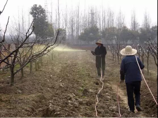 對果園進(jìn)行深翻,除了改善土壤結(jié)構(gòu)、保護(hù)土壤墑情外,更重要的是搗毀病蟲害的生存場所。因?yàn)橄N蛄、金龜子、金針蟲、地老虎等地下害蟲,冬季均生存在土中;桃小食心蟲、蚜蟲等害蟲喜歡在地縫、雜草內(nèi)產(chǎn)卵或以蛹、幼蟲等形態(tài)越冬。因此,土壤封凍前要深翻園地,刨松樹盤,把害蟲翻到地面上凍死或被鳥類食掉。結(jié)合澆灌的封洪水,可悶死土中蟲卵、幼蟲和蛹。注意在深翻時(shí),要將土壤表面的枯枝、落葉、雜草等一同翻埋到土壤深處,使其上的病原菌不再重復(fù)侵染。有灌溉條件的地方,果樹落葉后要進(jìn)行大水漫灌,把果園澆透,謂之封凍水,以滿足果樹越冬期間對水分的需求。干旱地區(qū)也可施足基肥后,拉水或擔(dān)水逐樹澆灌,待水滲完后,用土深埋,以蓄墑保水。