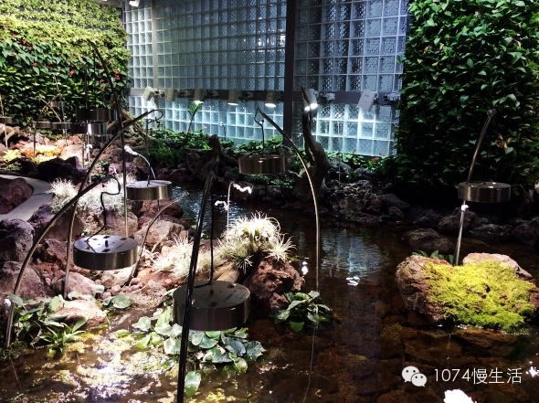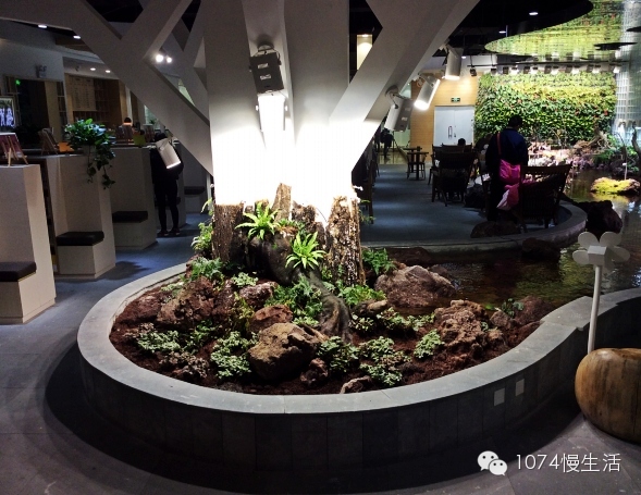 書架間隙,大片的綠色植被,墻上全都是鮮活的植物,目之所及,除了書,就是綠色。