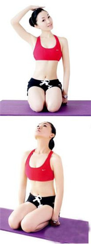 動(dòng)作要領(lǐng):頭部向左拉伸時(shí),用左手扶頭右側(cè);頭部向右拉伸時(shí),用右手扶頭左側(cè)。每個(gè)動(dòng)作保持30秒,前15秒順向拉伸,后15秒對抗拉伸。頭部向后拉伸時(shí),慢慢向后抬到最高處,感覺頸部完全拉伸保持30秒,返回至初始位置。每個(gè)動(dòng)作各做5次,做2~3組進(jìn)行一次頭部的正向和逆向旋轉(zhuǎn)。每回至少做5組,每組之間要有間隙。小貼士:注意手部力量不要過大,輕輕按壓。頸部不要松懈,要有力量支撐。