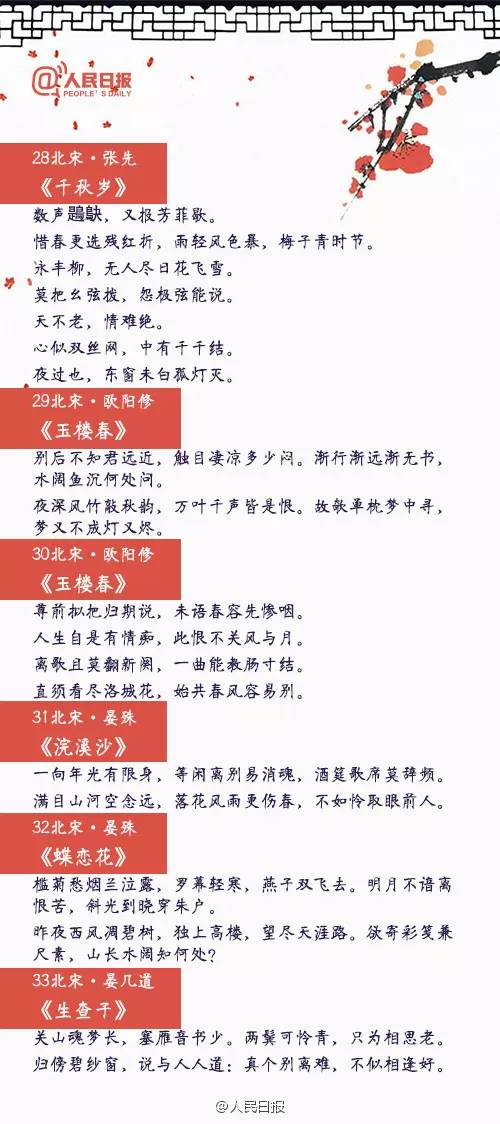 “愿得一心人,白頭不相離”,“從此無(wú)心愛(ài)良夜,任他明月下西樓”,“一川煙草,滿城風(fēng)絮,梅子黃時(shí)雨”……