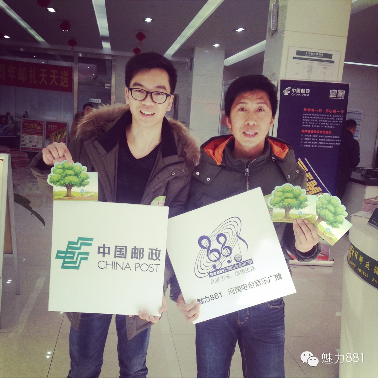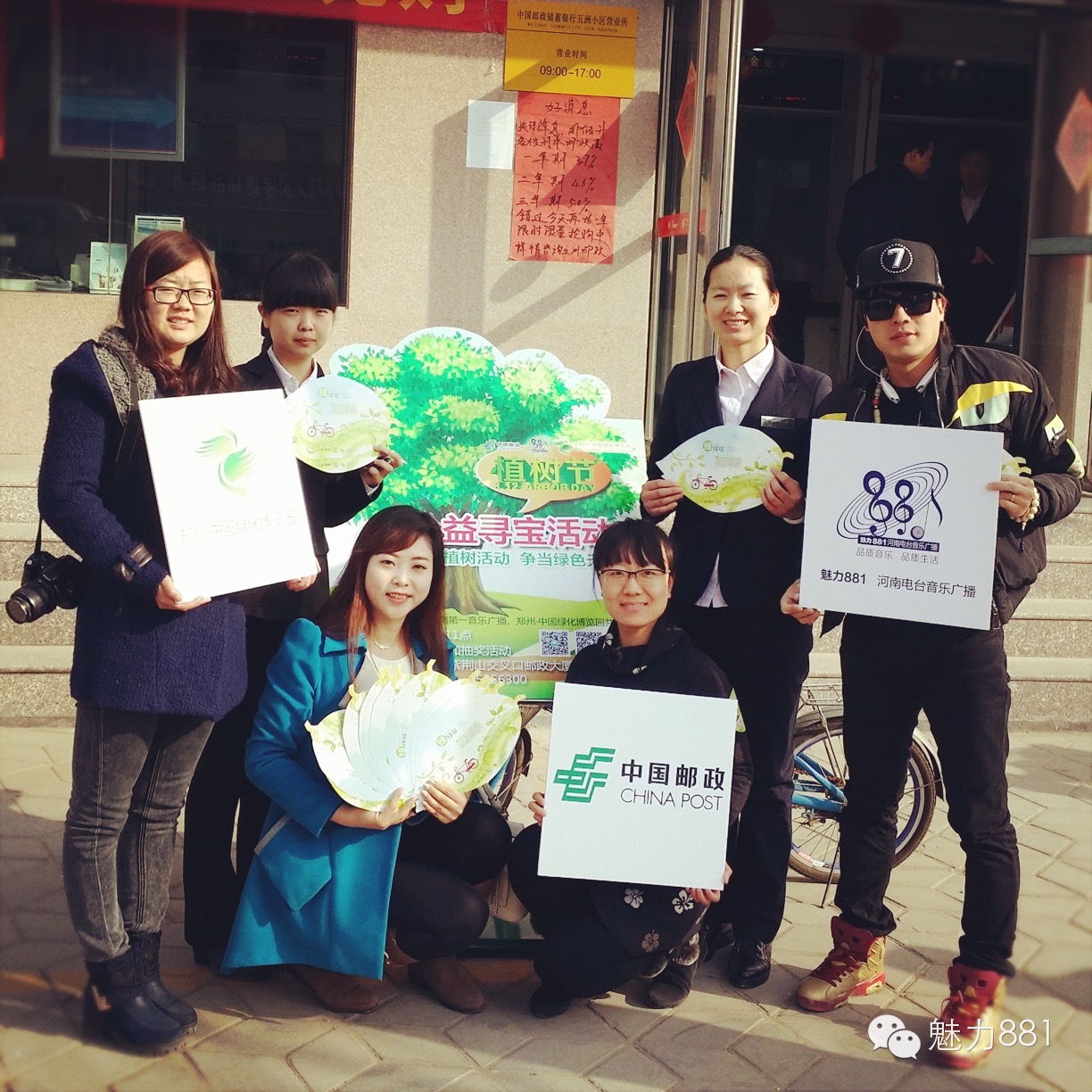 3月12日植樹(shù)節(jié),魅力881河南第一音樂(lè)廣播攜手鄭州郵政一同打造的“綠色尋寶大作戰(zhàn)”公益活動(dòng)圓滿舉行!今天有四位DJ帶領(lǐng)四隊(duì)聽(tīng)眾前往市區(qū)指定郵政網(wǎng)點(diǎn),尋找本次活動(dòng)限量定制的環(huán)保明信片。首先要為獲勝的小伙伴鼓掌,同時(shí)也要感謝所有參與本次活動(dòng)的親們,你們都棒棒噠!本次公益活動(dòng)的每一位參與者都是綠色環(huán)保小戰(zhàn)士,有你們?cè)?,綠城的樹(shù)一定會(huì)更綠,天一定會(huì)更藍(lán)!最后要特別感謝本次活動(dòng)合作方鄭州郵政、綠博園的大力支持,再次感謝魅力881聽(tīng)眾的參與!