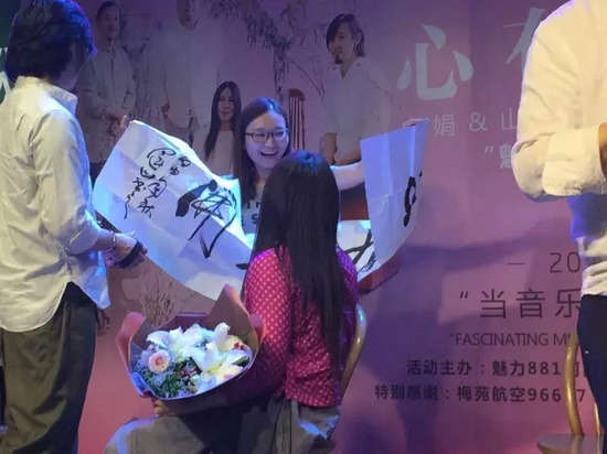 熱情的粉絲上臺(tái)送花、送字