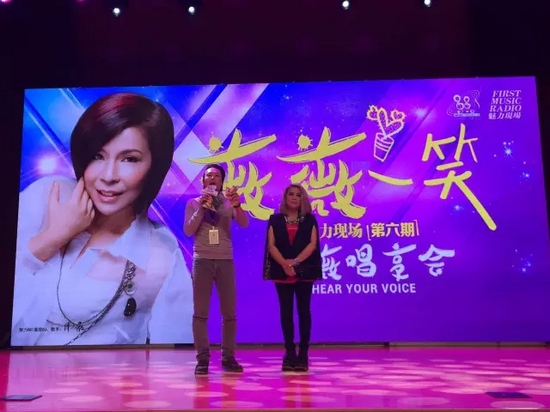唱享會(huì)還未開(kāi)始傅薇已經(jīng)在現(xiàn)場(chǎng)彩排了