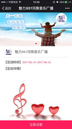 本周日就是父親節(jié)了。平時(shí)向爸爸們表達(dá)情意的機(jī)會(huì)可能不多,趁著節(jié)日,你可別落下。特意給親愛(ài)的老爸準(zhǔn)備了一份禮物,6月14日——6月16日,點(diǎn)擊菜單欄中的“點(diǎn)歌”或直接點(diǎn)擊本文底部的閱讀原文,進(jìn)入點(diǎn)歌互動(dòng)頁(yè)后點(diǎn)擊“立即點(diǎn)歌”,填寫(xiě)并提交姓名、手機(jī)號(hào)、所點(diǎn)歌曲名稱(chēng)、以及你想對(duì)父親說(shuō)的話(huà)。