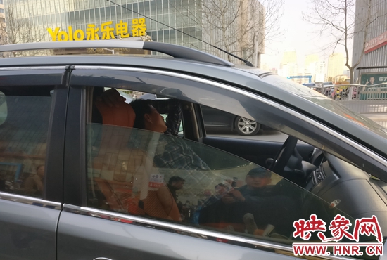 記者根據(jù)楊華民手指的方向看去,國(guó)貿(mào)360商場(chǎng)門(mén)前的花園路上,停車(chē)等人的機(jī)動(dòng)車(chē)排起了長(zhǎng)龍。記者與民警走到一輛車(chē)牌號(hào)為豫A559B8的機(jī)動(dòng)車(chē)前看到,司機(jī)正在座位上睡覺(jué),而其車(chē)輛則是停在了路中間的位置,嚴(yán)重影響了道路的暢通。