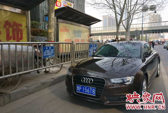 下午3時(shí)許,記者在花園路國(guó)貿(mào)360商場(chǎng)門(mén)前的公交站牌看到,多輛出租車(chē)和私家車(chē)將整座公交站停滿(mǎn),而公交車(chē)迫于無(wú)奈只能在路中間??俊R惠v車(chē)牌號(hào)為豫AS578W的機(jī)動(dòng)車(chē)司機(jī)在民警的勸說(shuō)之下駛離了公交站,而另一輛車(chē)牌號(hào)為豫PI56T8的機(jī)動(dòng)車(chē)同樣停在公交站,因車(chē)內(nèi)無(wú)人,民警對(duì)其進(jìn)行了處罰。