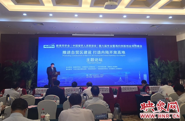 映象網(wǎng)快訊(記者 王邵怡 文/圖)9月13日,歐美同學(xué)會(huì)(中國(guó)留學(xué)人員聯(lián)誼會(huì))第六屆年會(huì)暨海歸創(chuàng)新創(chuàng)業(yè)鄭州峰會(huì)在鄭州舉行。來(lái)自全國(guó)的學(xué)者、企業(yè)家在主題論壇中就河南自貿(mào)區(qū)建設(shè)、打造內(nèi)陸開(kāi)放高地進(jìn)行了交流探討。