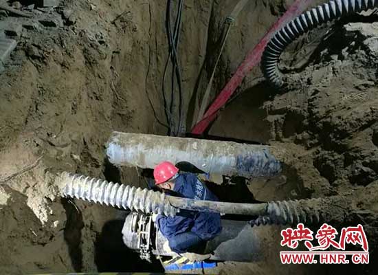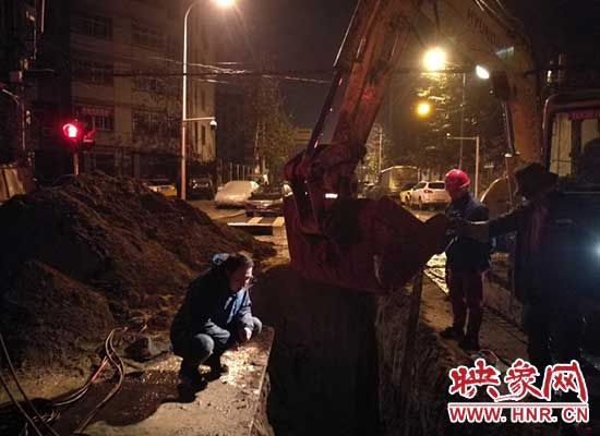 映象網(wǎng)訊(記者 燕子丹 文/圖)“把這四道電纜保護好,溝底再平整一下,螺栓都擰緊了嗎?下管時注意避讓雨水、污水管道,千萬要小心!”11月9日夜間1:00,鄭州自來水三強公司第七項目部經(jīng)理孟寶華帶領施工人員加班加點進行華山路至昆侖路新舊管網(wǎng)碰通作業(yè),現(xiàn)場機械轟鳴,人影綽綽,管道碰通工作緊張有序進行著。