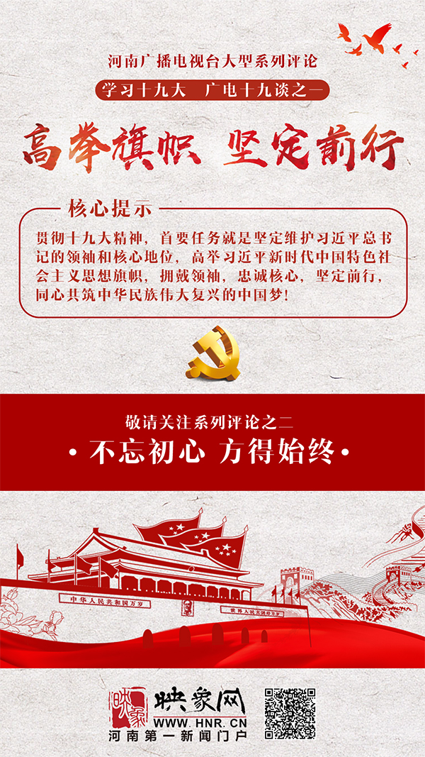 評論文章指出,五年來,河南前所未有的進步,就是遵照習總書記指示,緊跟黨中央令旗走,認真開展“兩學一做”活動取得的。深入學習貫徹十九大精神,堅決維護習近平總書記領袖和核心地位。擁戴領袖,忠誠核心,同心共筑中華民族偉大復興中國夢,眾志成城譜寫中原更加出彩新篇章。