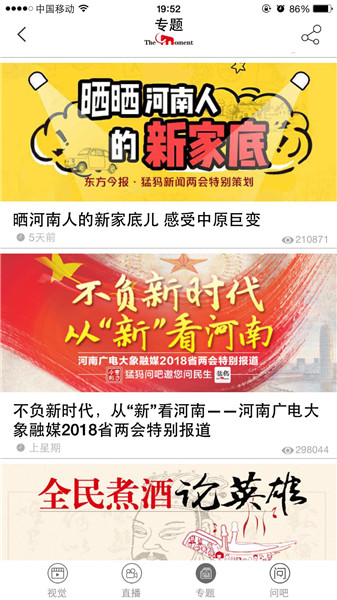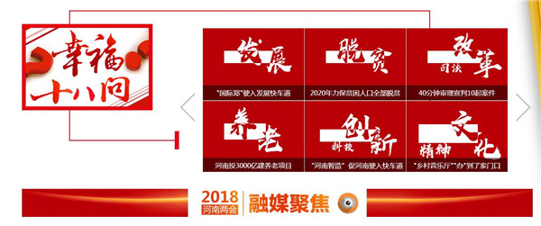 映象網(wǎng)訊(記者 秦雯)看兩會最熱最新鮮,看百姓關(guān)注,看代表委員風(fēng)采,看各界如何解讀報(bào)告。1月22日起,河南進(jìn)入2018兩會時(shí)間。大象融媒帶著問題聚焦兩會,帶著答案回應(yīng)網(wǎng)民。其間,大象融媒旗下所屬各媒體大顯身手,貢獻(xiàn)出大量精彩的報(bào)道,直播、高清圖、系列策劃及H5產(chǎn)品等,這些內(nèi)容一經(jīng)推送,就吸引百姓高度關(guān)注,有些板塊更是形成“兩會熱門話題”和“網(wǎng)絡(luò)熱詞”,被網(wǎng)友分享,引代表委員熱議。